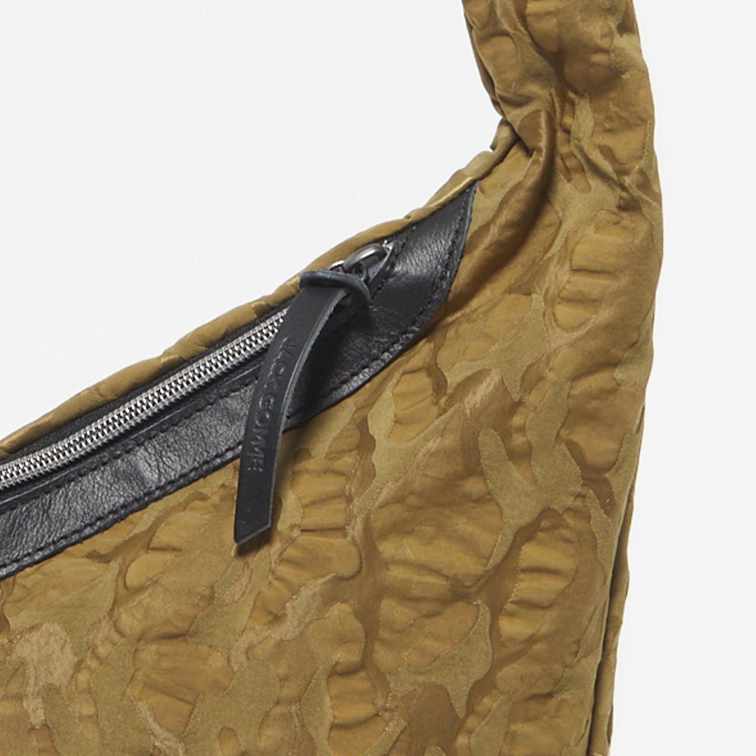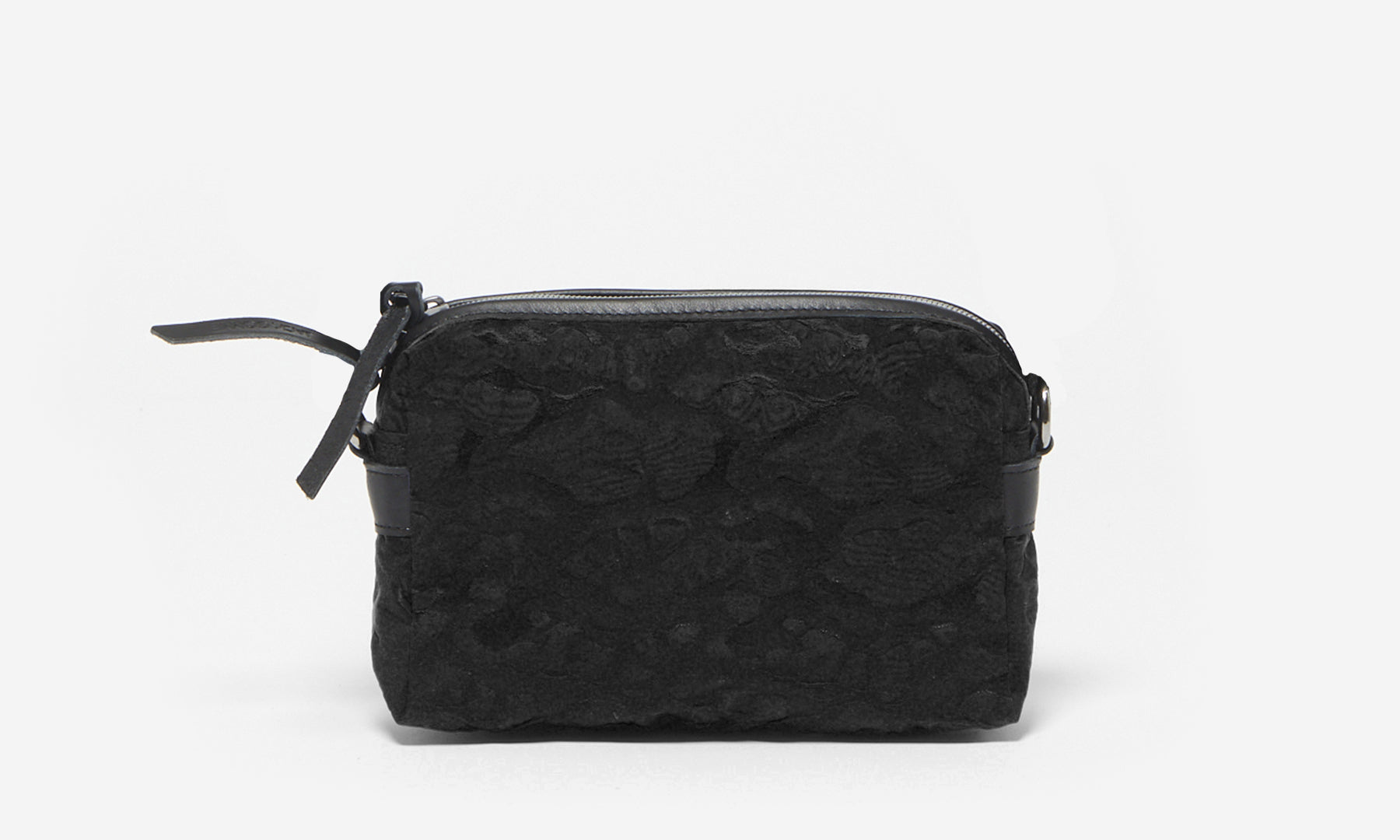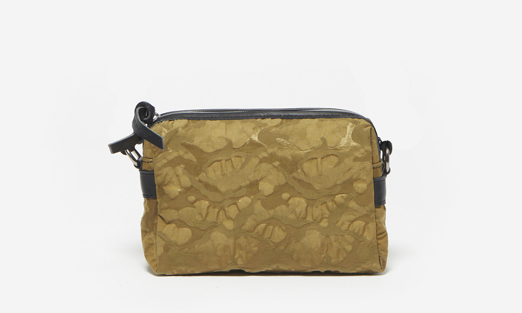 New this season, this Japanese jacquard nylon features an embossed effect and leather details.