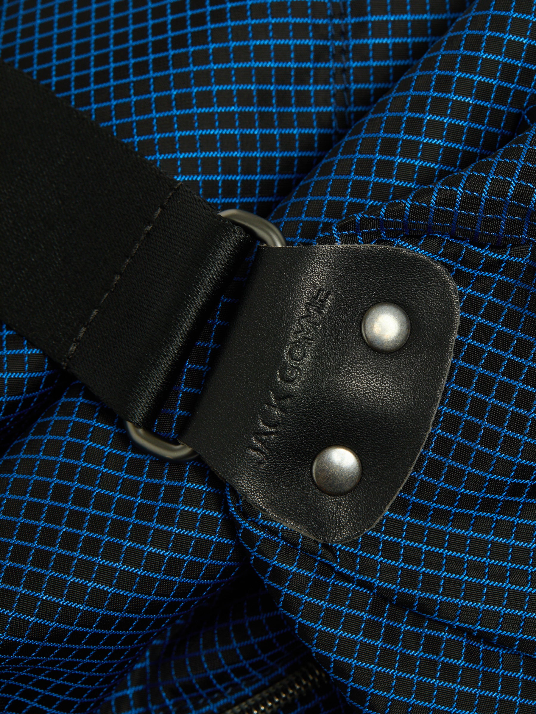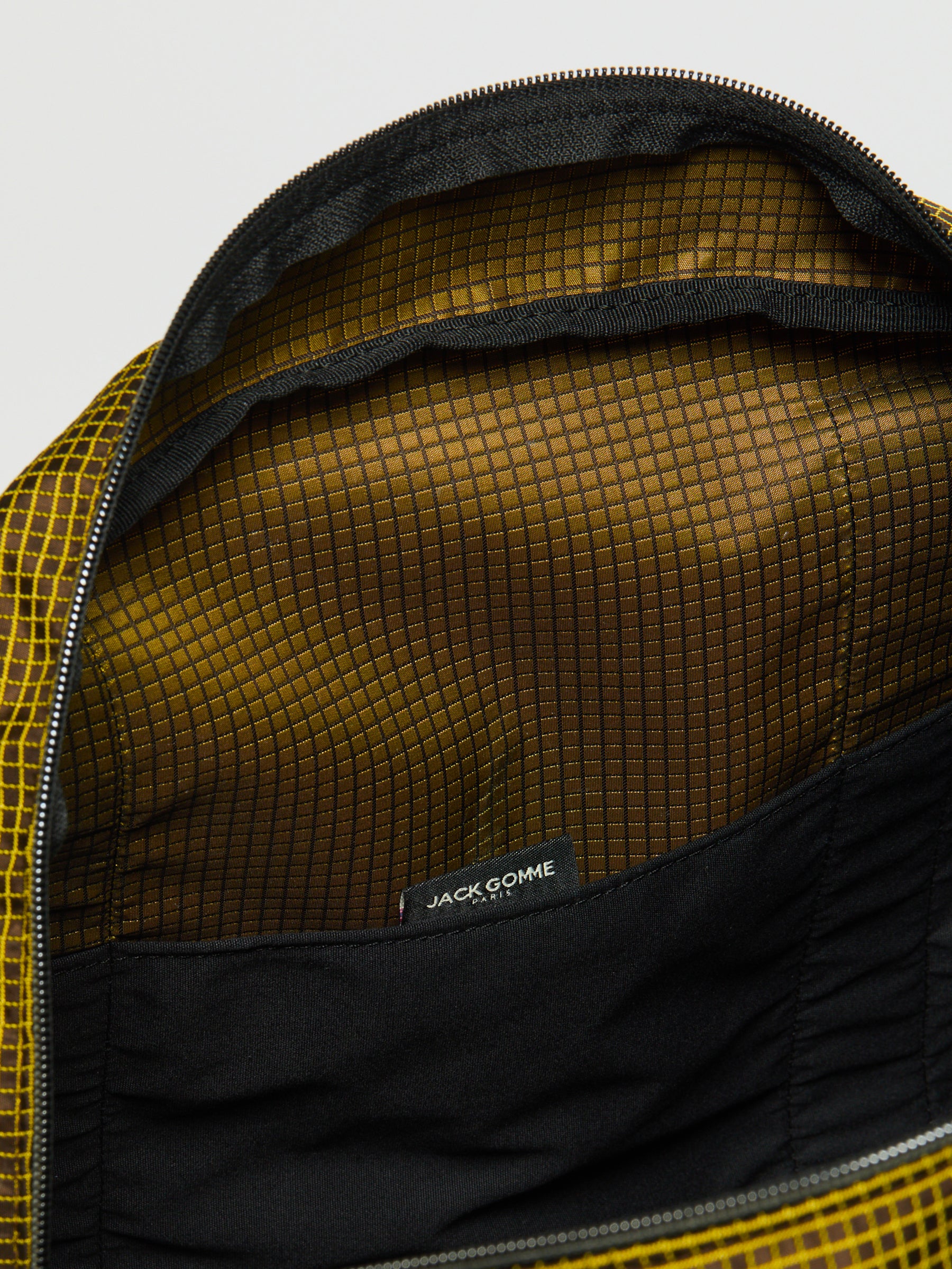 ESCAPE SURFACE: nouveau tissu technique nommé SURFACE. Toile quadrillée d’une incroyable légèreté, réalisée à partir d’un fil nylon régénéré (ECONYL®) rappelant les lignes et surfaces des villes.