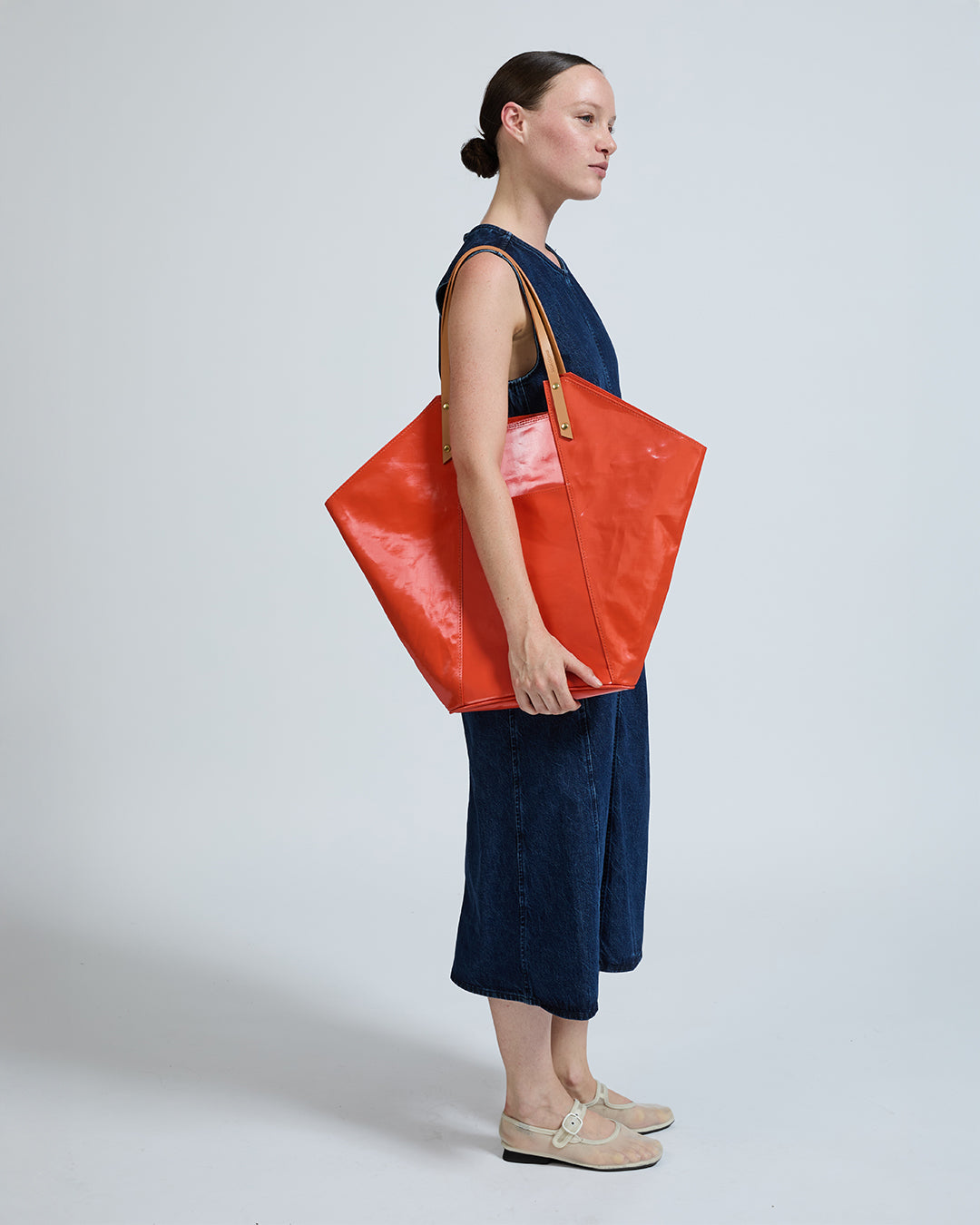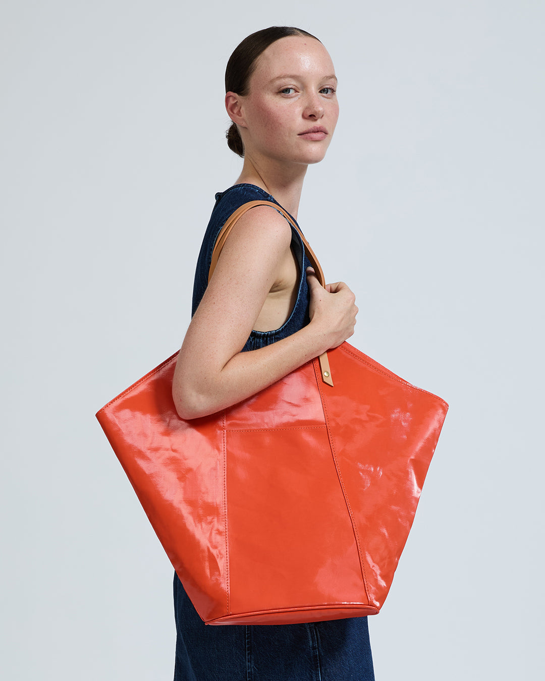 Ce cabas XXL aux lignes trapézoïdales, d’abord travaillé en cuir, a fait l’objet de multiples interprétations audacieuses : décliné en robe-sac, tressé ou encore embossé façon galuchat.