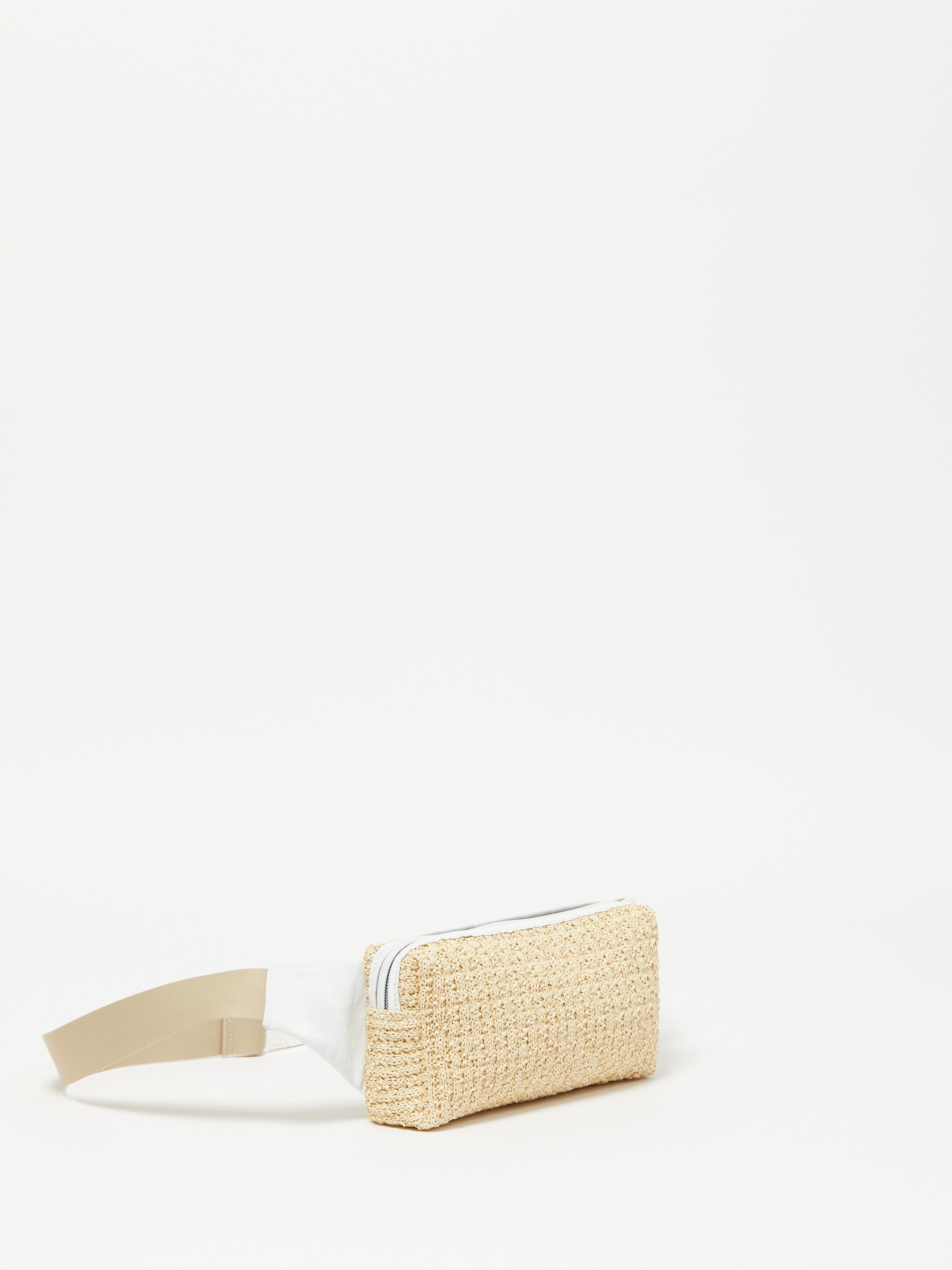 • Sac banane en lin et tissu tressé façon "raphia" porté crossbody